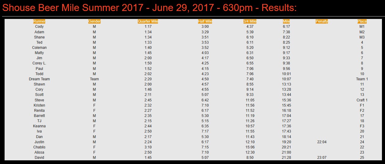 | Aug 18, 2019 | Todd - Shouse New MKL 52 Half-Marathon | 52 laps | 13.37 |