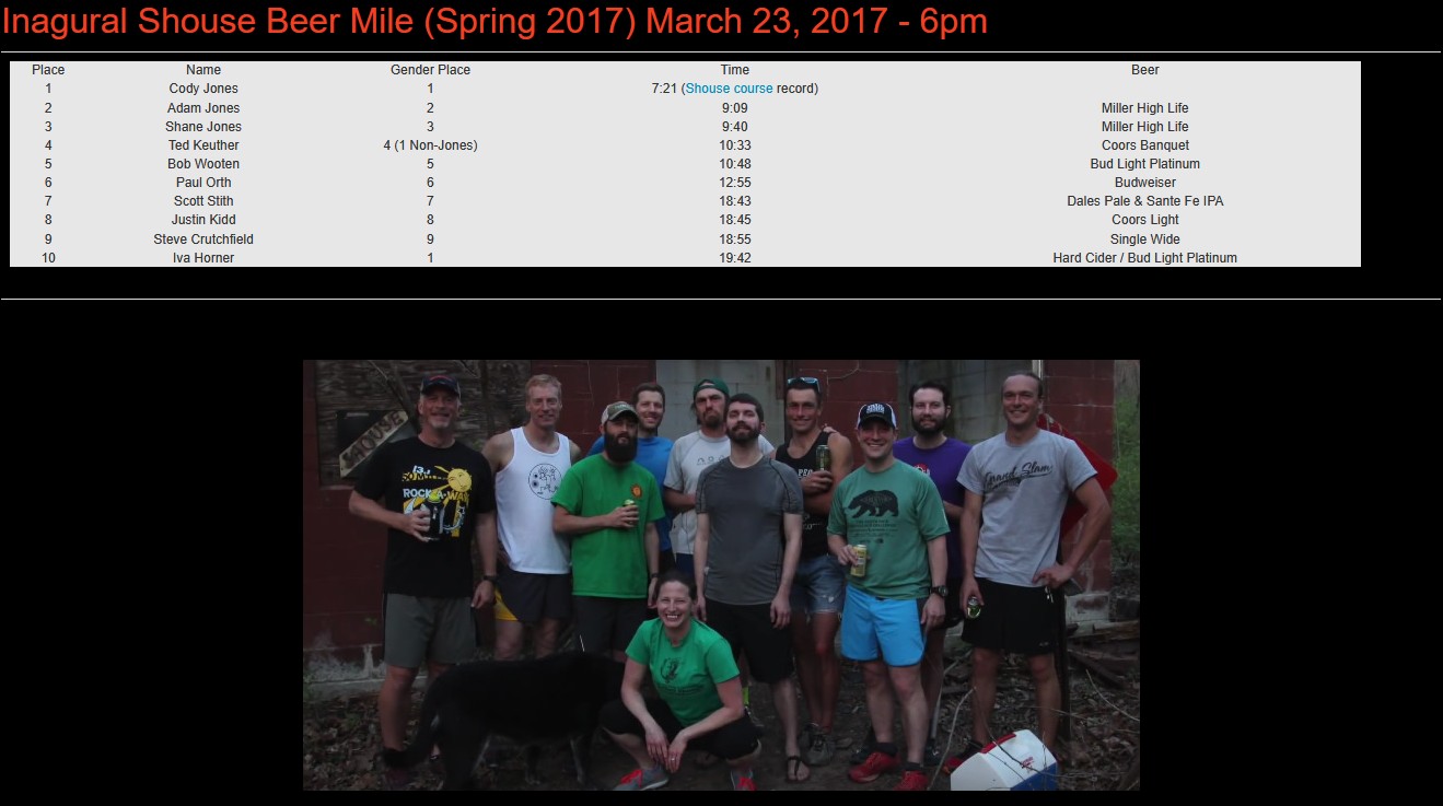 ![]() Shouse Most Known Loops: ![]() Todd Chandler 285 Laps - 83.8 Miles - May 9-10, 2025 ![]() Cody Jones 217 laps 63.8 Miles Todd - 212 Shouse Laps Mental Training* 212 Laps - 62.33 Miles 100k (part 2) See how it happened: *michelob ultra consumed (ask lobo) *sparkle shirt worn (wolfpack shirt worn earlier) * illegal run (missed last 2 shoustices/park closed) WYCO JONES - 196 laps - 57.62 Miles 4th - Leadking Paul's Winter Shoustice 5th Nick - 163 laps - 48 Miles |